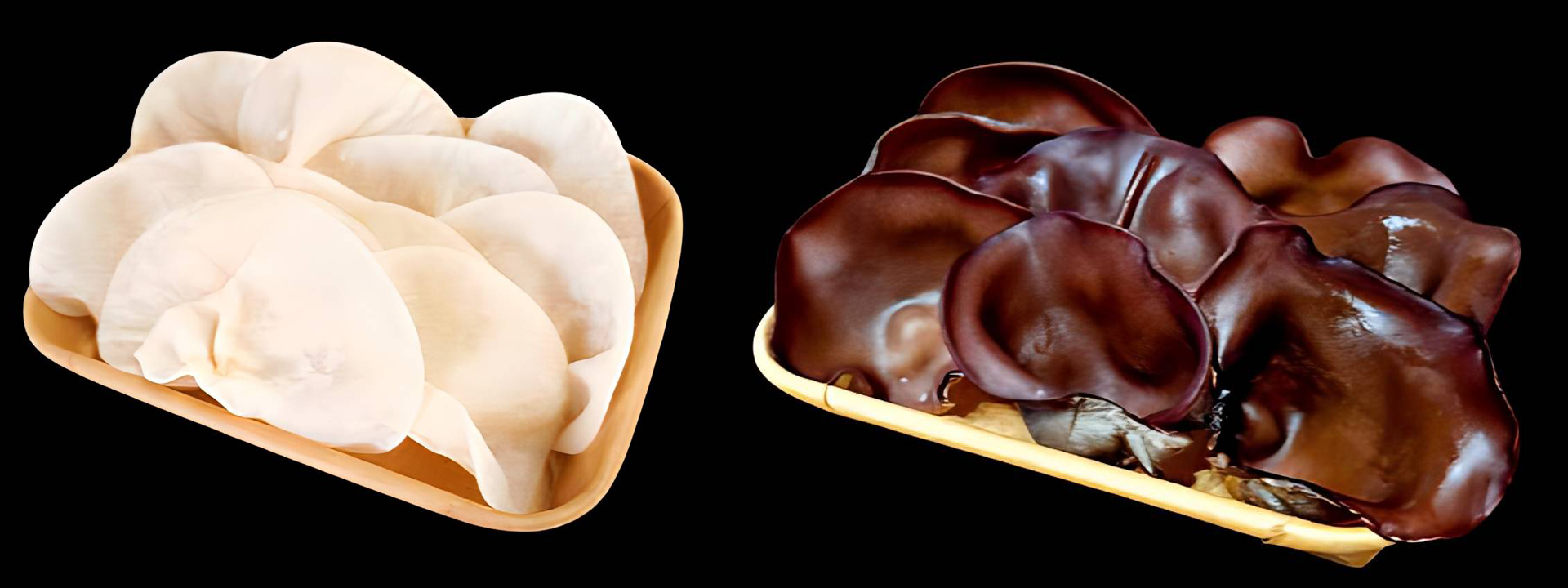きくらげは、美容と健康を支える栄養が豊富に含まれた、自然の恵みそのもの。 なかでも私たちのきくらげは、クセのないやさしい風味味と、ぷりぷりとした弾力、みずみずしさが特徴で、幅広いお料理にお使いいただけます。 また、ふんわりと揺れるその美しい形状は、まるで⼀枚のドレスのよう。 食卓に華を添える存在として、和洋中を問わずさまざまなお料理に彩りを与えてくれる、上質な食材です。 どうぞ、自然と人の手が織りなす、唯⼀無二のきくらげを、日々の食卓にお役立てくださいませ。